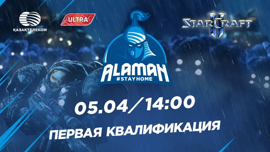 5 апреля в 14:00 (время по Нур-Султану) стартуют игры первой квалификации по StarCraft II турнира Alaman #StayHome.